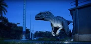 Индоминус рекс, выросший более 15 метров в длину, обитает в бухте хищников на поездке Jurassic World: The Ride. Во время поездки он сбегает, но его буйство останавливает тираннозавр.