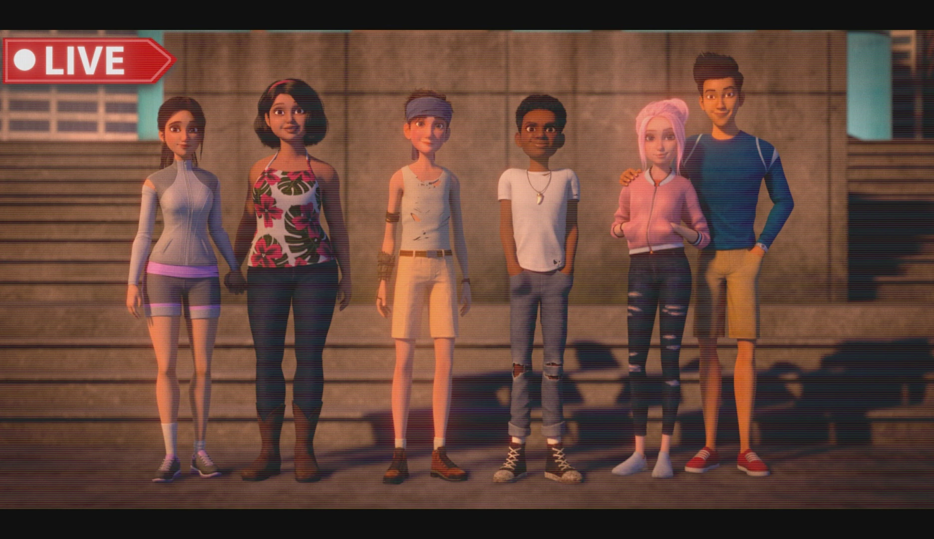 Тираннозавр преследует Сэмми и Дариуса, которые спасаются, когда Бруклин удается активировать рекламный звуковой цикл Мэйн-стрит, чтобы отвлечь животное. Ослепляя ее мерцающим светом и активируя наружный голографический проектор, команда в диспетчерской удерживает внимание тираннозавра достаточно, чтобы Дариус и Сэмми смогли сбежать в лес.