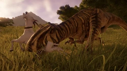 Metriacanthosaurus будет сражаться с более крупными или похожими по размеру хищниками, такими как цератозавр или зухомим, поэтому рекомендуется не селить их вместе. Metriacanthosaurus, однако, может достаточно хорошо сосуществовать с мелкими плотоядными животными, такими как дейноних.