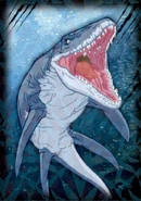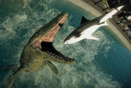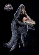 Мозазавр Мира Юрского периода обитает в своём аквариуме на поездке Jurassic World: The Ride. Во время поездки она съедает акулу и чуть не пробивает стекло аквариума.