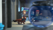 Ву и Майлз находят способ перетащить Мозазавра с помощью тачки.