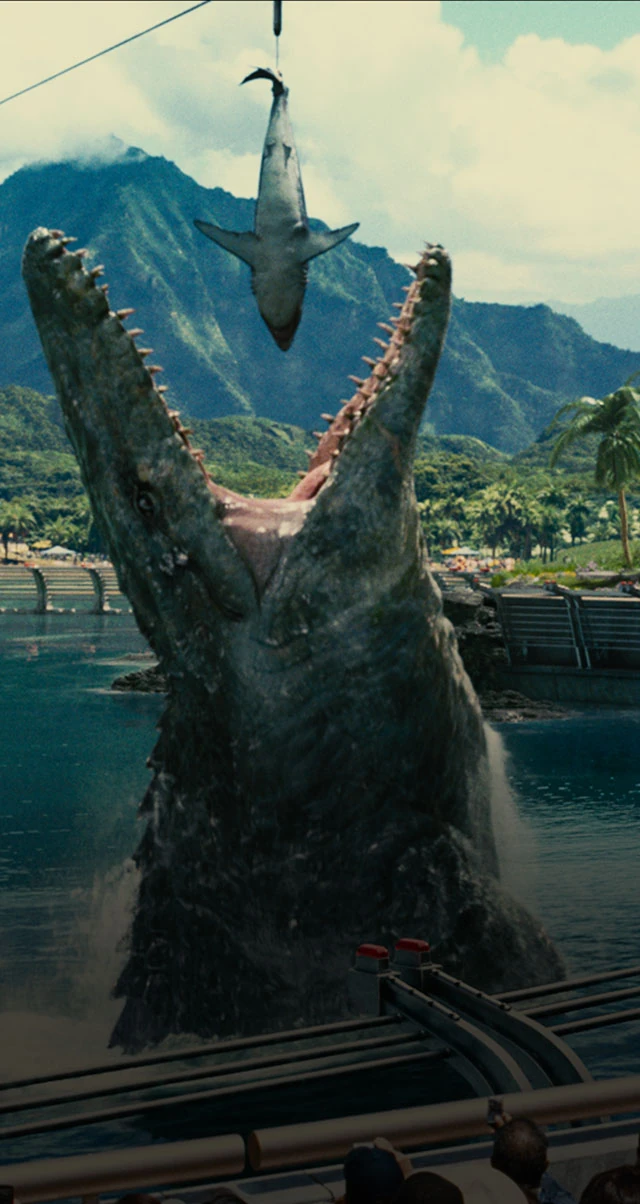 Мозазавр стал одним из самых дорогих животных в «Мире Юрского Периода». Стоимость содержания только Лагуны была астрономической, а целая операция по использованию передовой генетической науки для возвращения большой белой акулы статуса вида, находящегося под риском исчезновения, также была немыслимо дорогой. Было крайне важно, чтобы Мозазавр оправдал эти инвестиции. Для этого ее поведение было использовано для создания шоу.