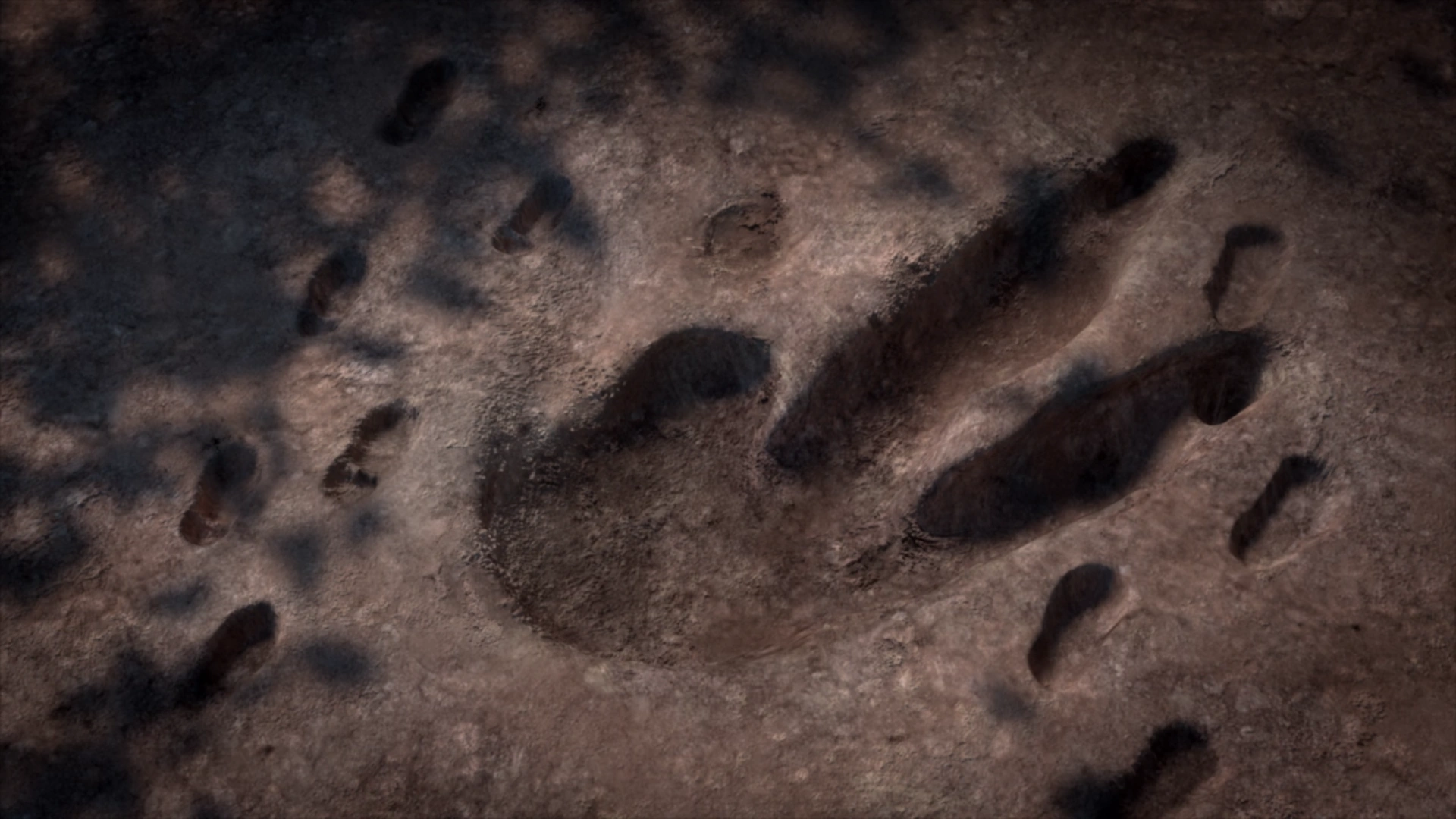 Правый след взрослого Скорпиоса рекса (следы молодого человека в масштабе)