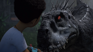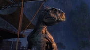 Гибрид был создан в результате генного сплайсинга ДНК скорпеновой рыбы с генетическим материалом Тираннозавра рекса, велоцираптора, карнотавра, квакши, гремучей змеи и других неназванных животных. Мобильные игры Ludia предлагают также участие ряда других теропод, включая Монолофозавра, Альбертозавра и Дейнониха, но это не было подтверждено.