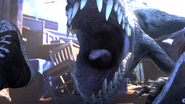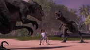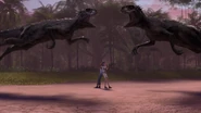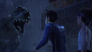 Когда Скорпиос добирается до причала раньше ребят, Кенджи приходится отплыть на лодке на приличное расстояние от острова, чтобы уберечь другую часть группы. Однако позже у побережья Дариус и Бен становятся свидетелями сражения двух гибридов. Ребята считают нужным уничтожить обоих Скорпиосов, так как они очень опасны. Группа выходит к старому Центру для посетителей, где на них нападает Скорпиос рекс, а затем и Блю. Позже появляется ещё один гибрид и между тремя динозаврами начинается драка.