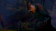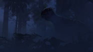 Позже этой же ночью, Скорпиос рекс замечает Ясмину, которая нашла противоядие и спешила к убежищу, гибрид гонится за ней, но затем отвлекается на взрыв в далеке, устроенный Дариусом и Беном с целью отвлечь его. Этой же ночью ребята собираются уплывать с острова, но Дариус отправляется искать Бена, оба туриста становятся свидетелями нападения Скорпиоса на стадо анкилозавров, которым удаётся дать отпор гибриду, в это время Бруклин сообщает, что Скорпиос рекс гонится за ними и нападает на стадо паразауролофов. Дариус удивляется тому, что Скорпиос - самый быстрый динозавр.