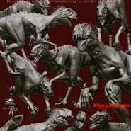 - С некоторыми человекоподобными позами и в целом внешним видом Скорпиос иногда напоминал гибридов людей и динозавров из третьего наброска "Парка Юрского периода 4".