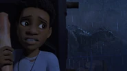 Когда Сэмми и Бруклин отправляются на поиски тайн, чтобы собрать компромат на Mantah Corp, девочки находят тайную лабораторию доктора Ву, в его ноутбуке они находят информацию о гибриде, а так же узнают, что гибрид вырвался на свободу. Спеша предупредить остальных, они натыкаются на Дариуса, и рассказывают ему о Скорпиосе. Ребята собираются в убежище, которое они укрепили, чтобы переждать шторм и выжить при нападении гибрида. Скорпиос рекс почуял тепло за периметром убежища, но не смог подойти ближе, так как его ударило током от ограждения. Такая защита явно разозлила гибрида, но он не пошел напролом, вместо этого Скорпиос рекс залез по дереву в убежище детей и напал на них. В результате Сэмми получила ранение шипами с хвоста гибрида, а остальные ребята чудом остались живы.