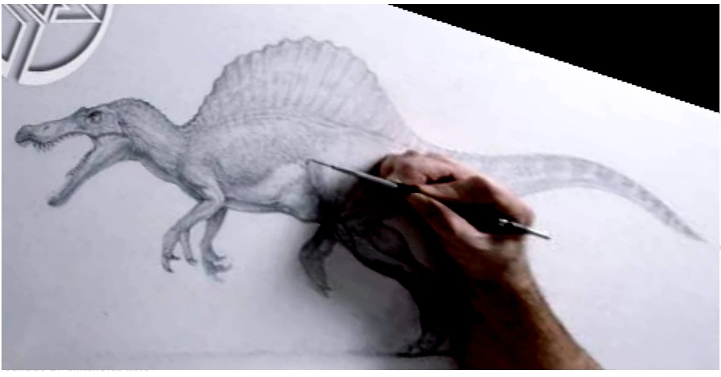Первое появление спинозавра в "Парке Юрского периода 3" - это первый завершённый кадр от команды по визуальным эффектам.