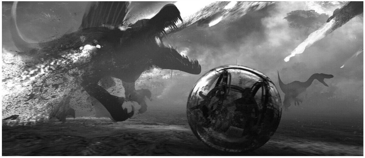 На стадии раскадровки бой между спинозавром и тираннозавром должен был быть "подвижнее": спинозавр мог отбиваться хвостом и залезть на спину ти-рекса. Сам спинозавр на стадии раскадровки выглядел правдоподобнее финального дизайна зверя в фильме.