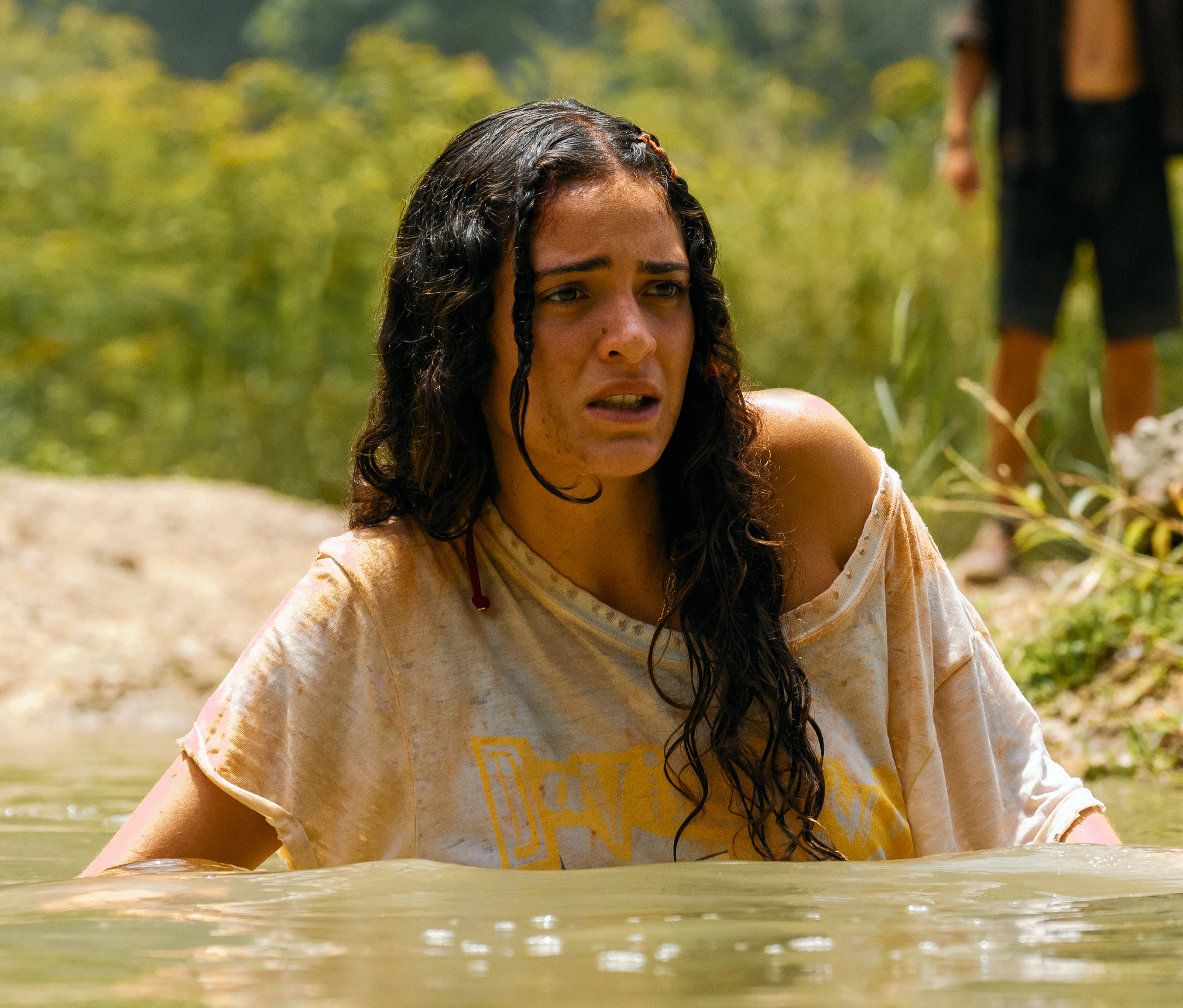По дороге в деревню Тереза с семьёй добираются до реки и видят на другом берегу сарай. Она переходит реку и находит там спасательный плот, но на неё чуть не нападает дилофозавр, который , заметив спящего тираннозавра, убегает . Когда Тереза активирует плот, несмотря на предупреждения Рубена и Ксавье, тираннозавр просыпается, замечает их, когда они пытаются уплыть на плоту, и начинает преследовать. Тереза выбивается из плота, но ей удаётся пробраться сквозь скалу, за которой тираннозавр не может следовать, и воссоединяется со своей семьёй.