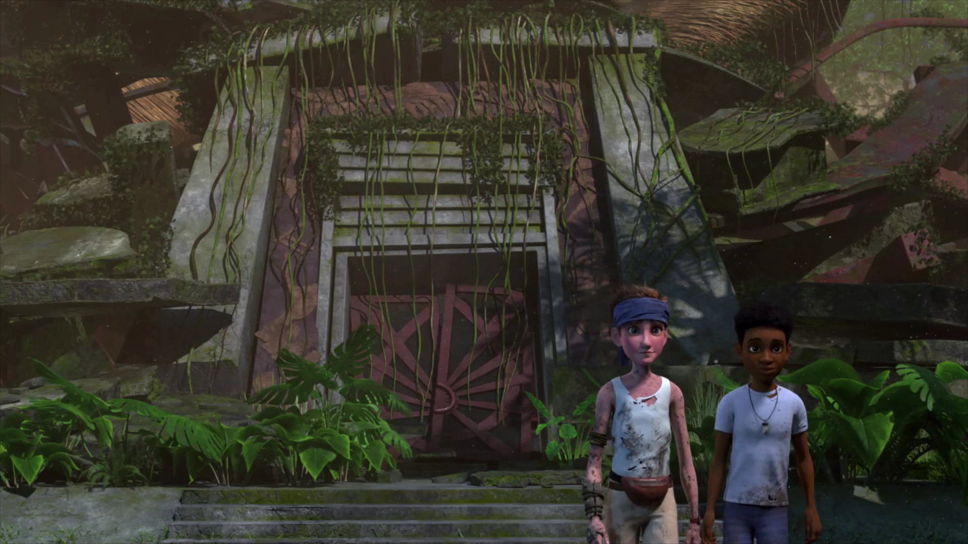 Они вошли в здание, ища убежища от неистовствующего Индоминуса, и обнаружили, что оно так же сильно заросло, как и снаружи. Наткнувшись на остатки баннера «Когда на Земле царили динозавры», Зак использовал его, чтобы сделать импровизированный факел, чтобы освещать себе путь. Исследуя дальше здание, они нашли относительно нетронутый гараж для технического обслуживания, в котором стояли джипы 18 и 29, а также другие предметы, связанные с Парком Юрского периода. Вспомнив лето, когда они чинили машину дедушки, они попытались восстановить один из джипов и как можно скорее вернуться на курорт. Услышав, как мальчики выезжают из гаража, Оуэн Грейди и Клэр Диринг подошли и вошли в гараж.