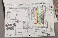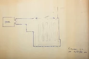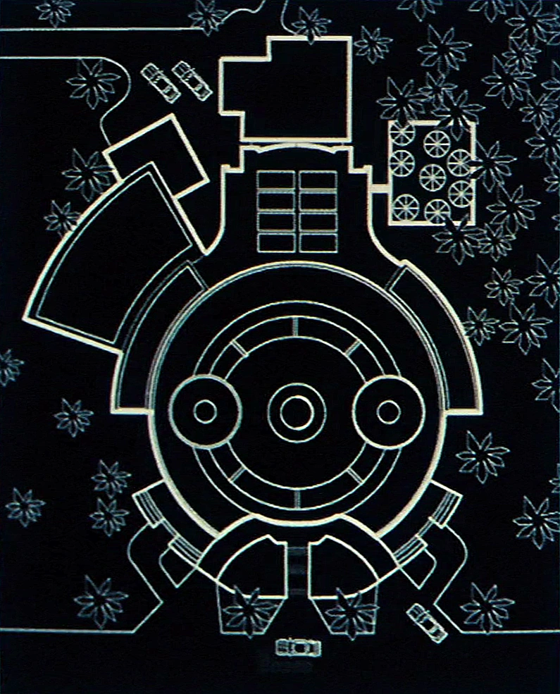 Устаревший чертеж вида сверху первого этажа Центра посетителей, взятый из системы Парка Юрского периода.