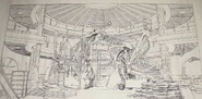 Дариус Боуман, Кенджи Кон и Ясмина Фадула наткнулись на здание, преследуя компи, укравшего их компас. Хотя поначалу они не решались входить в здание, полагая, что оно либо населено привидениями, либо проклято, в конце концов они вошли внутрь и поднялись по оставшимся строительным лесам, чтобы добраться до компи, которые гнездились на потолке. Затем Блю вошла в ротонду через отверстие, которое Индоминус оставил в фреске. Обитатели лагеря пытались оставаться тихими, ожидая, пока Блю уйдет, а затем попытались выскользнуть из здания. Однако Блю была из тени и преследовала их. Через несколько минут Кенджи вернулся в ротонду, чтобы достать монеты из ржавеющего торгового автомата и использовать их для отвлечения толпы компи, напавших на раненую Блю.