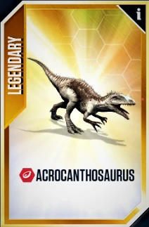 Acrocanthosaurus is available through the Solid Gold card pack or it's exclusive 20,000 Loyalty Points card packs or doing the VIP Exclusive Acrocanthosaurus tournament. No hybrids are associated with this creature.