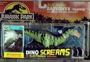A second figure was released in the The Lost World Series 2 line with a yellow paint job and snapping jaws. Two repaints released of the TLW series 2 Baryonyx, a green one for the Lost world toy line a red one for the Jurassic Park: Dinosaurs line and Jurassic park 3.