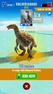 Erlikosaurus is a Cunning Epic creature in Jurassic World: Alive, with a Cunning Rare GEN 2 variant added to the game in its worldwide release on May 24, 2018.