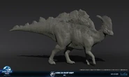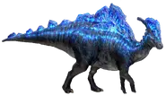Hadros lux is a genetically enhanced Parasaurolophus (possibly more specifically Parasaurolophus lux, referencing Camp Cretaceous) with a fleshy crest over her cranial crest and a large sail jutting down her back. Like Parasaurolophus lux, she can glow in the dark. She appears exclusively in Jurassic World: Alive.