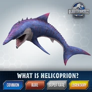 Helicoprion is an aquatic super rare surface in Jurassic World: The Game. It is erroneously called as a shark, when it was actually related to the chimaera.