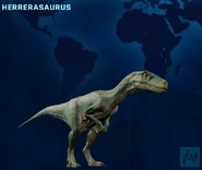 - ↑ On the video of Herrerasaurus seen on the Tour the Island website there is a scene comparing the Herrerasaurus seen in Jurassic Park: The Game to the actual size of Herrerasaurus and it is stated that they can reach 20 ft in length like the real dinosaur.