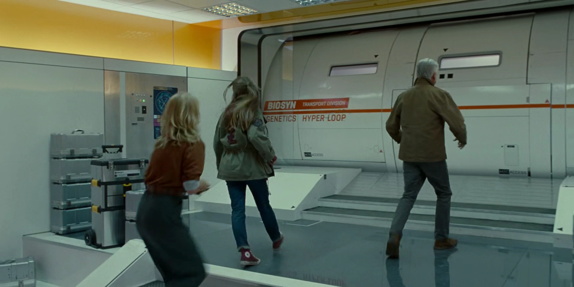 Alan Grant, Ellie Sattler, and Maisie Lockwood enter the hyperloop to escape to the airfield with the help of Ramsay Cole. However, Lewis Dodgson shuts the hyperloop car down, stranding them in the tunnels before Ian Malcolm and Ramsay rescue them.