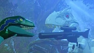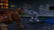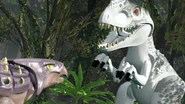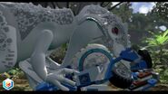 The final appearance is a boss battle in which Grady must fire toys into the dinosaur’s mouth while simultaneously using the Raptors to attack it. Once the T. rex is brought into the action, it is a one on one fight for the most part until the Indominus rex is knocked to the edge of the lagoon. It was eaten whole by the Mosasaurus. The last time it is seen in the campaign is where it plays cards with the other victims of the Mosasaurus.