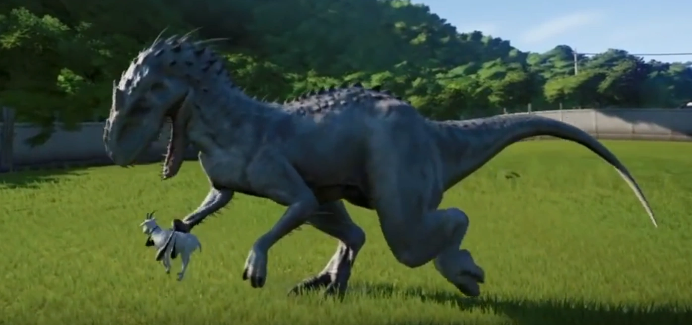 - Indominus rex has two unique hunting animations - one for hunting goats and the other for hunting sauropods.