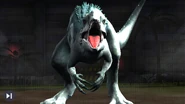 She later appears when Owen and two park workers go into her paddock, the three humans managed to distract her long enough to attempt an escape. However, she managed to escape as well, using the tip of her claw as a jam from the door ceiling completely. Her escape results in Owen having to cover himself in truck oil to avoid being located.