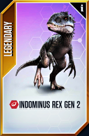 Indominus rex is creatable in Jurassic World: The Game as a Legendary Hybrid carnivore. An additional Gen 2 version was added in December 20th, 2019.
