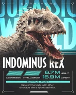 - ↑ 1.0 1.1 1.2 1.3 1.4 1.5 1.6 1.7 1.8 JurassicWorld.com - Dinosaurs - Indominus Rex (2015, January) Retrieved from http://www.jurassicworld.com/dinosaurs/indominus-rex/