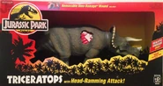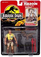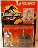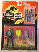 Jurassic Park Series 1 is the first Jurassic Park toy line and was made by Kenner. Kenner was at its peak as a toy maker and managed to score the deal with Amblin Entertainment. Originally, the 5 figures appeared with a black background behind the bubble. After a month of production the background was changed to the ever-popular "sunset/jungle" background. In addition the original 5 figures had clothing depicting their film characters, but their heads were based on artist renditions; head sculpts were later changed in Series 2 to more accurately reflect the actors/actresses' likenesses.