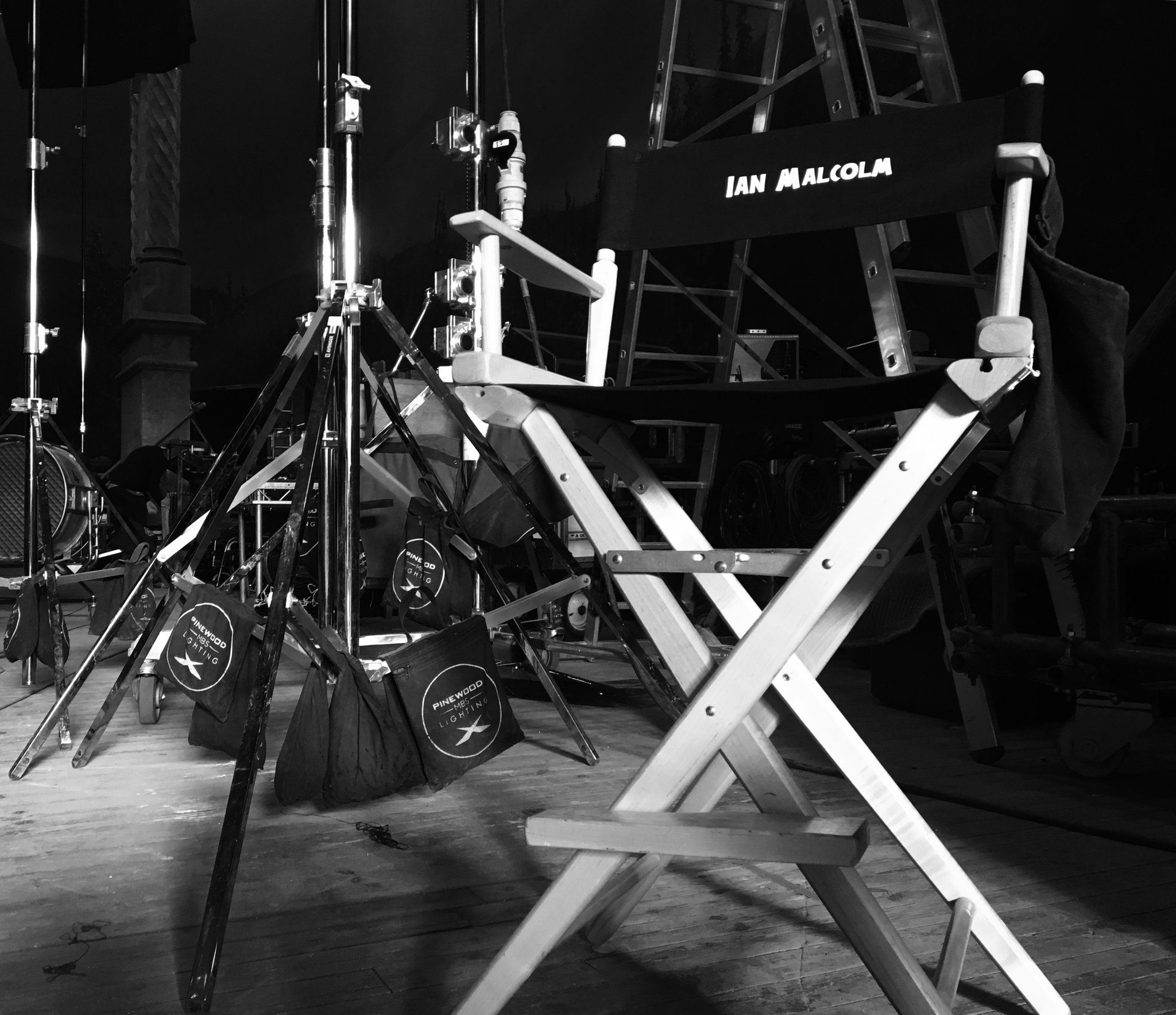 Coincidentally, Colin Trevorrow tweeted a picture of a director's chair with the name "Ian Malcolm". Marshall explained: "A new chair was added to the set today..." This suggests that Jeff Goldblum, the actor who portrays Malcolm's character, arrived at the set today. The fact that Goldblum arrives on the set when more than half of the scenes are already shot, suggests that Malcolm will not be a main character in the new film.