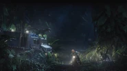 The ride begins as the vehicle autopiloting through the jungle until they have entered a valley where all herbivore dinosaurs roamed freely including Brachiosaurus, Triceratops, Stegosaurus, Parasaurolophus, and Ankylosaurus while other guests on vehicles that were escorting to safe zone due to weather conditions when the lighting strikes on the antenna. Once they entered to a lush jungle, lighting strikes again and this time the power has failed when it was shutdown and passed the the new exhibit where Indominus rex that escaped before observing the riders and proceed to attack. The vehicle escapes and drove through the forests with multiple lighting effect until they have encountered a mother Ankylosaurus that ferociously attacking at the riders by swinging her club tail while protecting her two babies. The vehicle spins cautiously until it stops where riders witness the Gyrosphere was damaged until Indominus rex resume her chase towards the riders and then the ACU engaged to attack, but Indominus shift her focus on the ACU and go on killing spree.