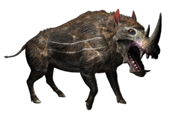 Keratoporcus is a genetically modified mammal hybrid of Archaeotherium and woolly rhinoceros (Coelodonta).