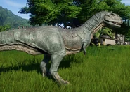 Majungasaurus is 1 of 5 exclusive dinosaurs that were added to the deluxe edition of the game. It's coloration is mainly greyish brown all over the body with dark brown stripes all over the body with white osteoderms.