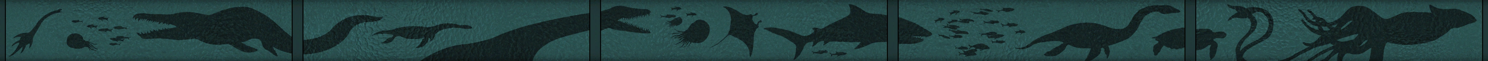 As well as several murals and carved fossils of ammonites, mosasaurs, and ichthyosaurs, amongst others extinct and extant genera.