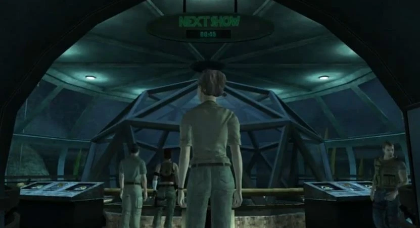 The rotunda was a large underwater facility which enabled visitors to view the lagoon and the Marine Facility's underwater structures. In the center of the rotunda was the control room which contained two levels. On the upper level, there was a computer terminal and a phone, and on the lower level there was pool leading into the lagoon, scuba gear, and a sealed door. There were also information panels dotted around the rotunda.