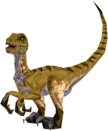 The Megaraptor was featured in Warpath: Jurassic Park. As the game was made before the discovery of the aforementioned hand bone, it is portrayed as a giant dromaeosaur; in this case, an enlarged/oversized Velociraptor. It was most likely chosen because the raptors from the movies were much too small compared to the other dinosaurs in the game. In the game's instruction manual, it is codenamed M-Raptor, while in the game it is simply called "Raptor". In the main menu, and the save settings/memory card menu, the Megaraptor took the Velociraptor's place (on the field with tall grass). It has three colors: tiger skin, brown, and black.