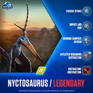 Nyctosaurus makes its first physical appearance in Jurassic media in Jurassic World: The Game on July 15th 2023 as a tournament legendary non-hybrid pterosaur.