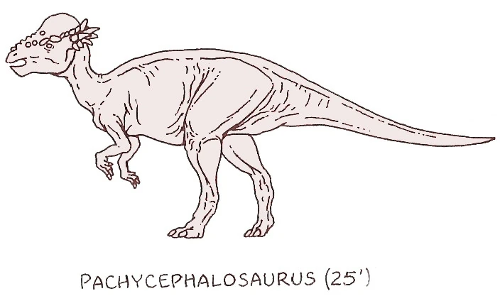 Pachycephalosaurus was a medium-sized green dinosaur with a large dome on its head. They were aggressive and bombarded any animals that presented a threat to them. There was a large population of them on Isla Sorna.