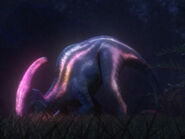 As Hawkes walked Brooklynn and Wu through the jungle, he heard a sound and had them stop. As the sound got closer, they realized it was a female Parasaurolophus lux. Wu explained to Brooklynn that his dinosaurs weren’t monsters and about the bioluminescent genes inside the Parasaurolophus. However, he quickly realized that the Parasaurolophus lux shouldn’t be out in the open, with Brooklynn explaining that he can "thank your other creation for that" and its offspring. Wu was surprised to hear that there were two Scorpios rexes, to which Brooklynn explained that the Scorpios had managed to produce another and that they would have killed everything on the island if not for them. Hawkes got tired and decided to scare the hadrosaur off with his gun. When the female Parasaurolophus lux heared the gun, she ran away.