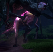 The Parasaurolophus lux herd from the River Adventure were chased outside of the caves by either of the two Scorpios rex, causing Brooklynn, Kenji Kon, Sammy Gutierrez, and Yasmina Fadoula to run away from them. During the attack, the Parasaurolophus lux suffered heavy casualties, with about three or four being killed by a Scorpios rex.