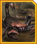 Pulmonoscorpius appeared in a chunk of amber that can be found in the labs all around the facility. Due to its size, it was probably a juvenile, since it is just a little bigger than Sam's hand.