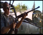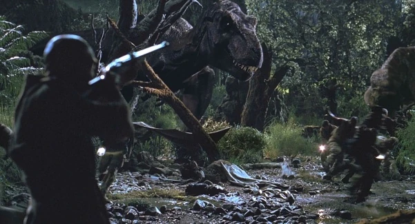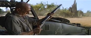 The Nitro Express Double Barrel Rifle is a large-caliber rifle carried by Roland Tembo in The Lost World: Jurassic Park, It is a large caliber rifle popularized in the early 1900's by ivory hunters. These rifles are often referred to simply as a "double," referencing the two barrels per single rifle. Double rifles are the favored rifle for African professional hunters as the two barrels allow for a quick follow-up shot on animals without having to reload. Two rifles were made for the production of this movie by B. Searcy & Co. of Boron, CA. Steven Spielberg is said to own one of them himself. The location of the other is unknown. Both rifles made for the movie are real and fully functional. As with all double rifles, the intense amount of time and labor to make them dictates a price tag of several tens-of-thousands of dollars. A plastic model was made as well for stand-ins when the real rifle, which is heavy, was not necessary.