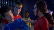 Once the campers, Dave and Roxie arrive back at camp. Darius expresses his annoyance towards Kenji for his stupidity. Kenji explains how he wants to make his father proud and that he is always viewed as being a failure. When Roxie and Dave confront the boys about what happened, Darius takes sympathy for Kenji and claims it was all his fault; throwing himself under the bus and saving Kenji from embarrassment. Roxie finds Darius' explanation suspicious noting it doesn't match Brooklynn's account of the incident and gives the boys a final warning. As a punishment the next morning the boys have to clean up dinosaur poop and Darius is given a perfume while the rest of the group heads on a trip to the genetics lab.