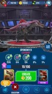Spinonyx is a genetically modified dinosaur hybrid of Spinosaurus and Baryonyx (both Gen 2) that appeared in Jurassic World: Alive.