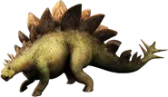 The back of Stegosaurus is seen in the background of the Mamenchisaurus Area. The dinosaur does fully appear as an obstacle in the Triceratops level, but with different colors.