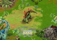In the Hunter's camp and adult and infant Stegosaurus is captured. Nick and Sarah must first release the adult. Then the adult can be used to break the infant's cage and set it free.