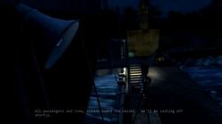 limit." After this, an announcer then warns all personnel that the boat is leaving soon. Dennis is still not there, Miles then decides that they - him and Nima - must go in after Dennis. Unfortunately they need access passes to get through security, but Miles doesn't have any. Miles then heads for the phone to call Dodgson again. Nima then walks toward Miles and interrupts his heated conversation with Dodgson, she then says; that they need to get going. Miles however dismisses this by stating that they need access passes before they can "get going". Nima then creep toward the security quarters, there she spots two access passes on the table. With the window open all Nima has to do is reach in to get the passes but the guard needs to be distracted, she then sees a phone on the wall and the number. Nima walks toward