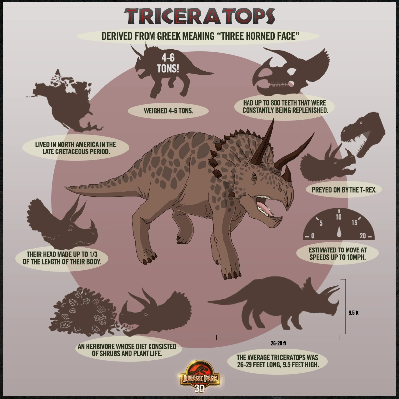 - ↑ 1.0 1.1 1.2 Jurassic Park Institute, Dinopedia, Triceratops. Link.